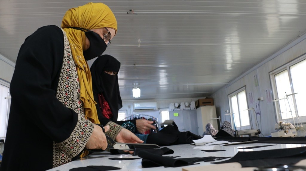 But in Za’atari Refugee Camp, Jordan the resourceful Syrian refugee women in the sewing class have turned their hands to making face masks. As well as earning a little income to support themselves and their families, the facemasks help the crowded community to stay safe.